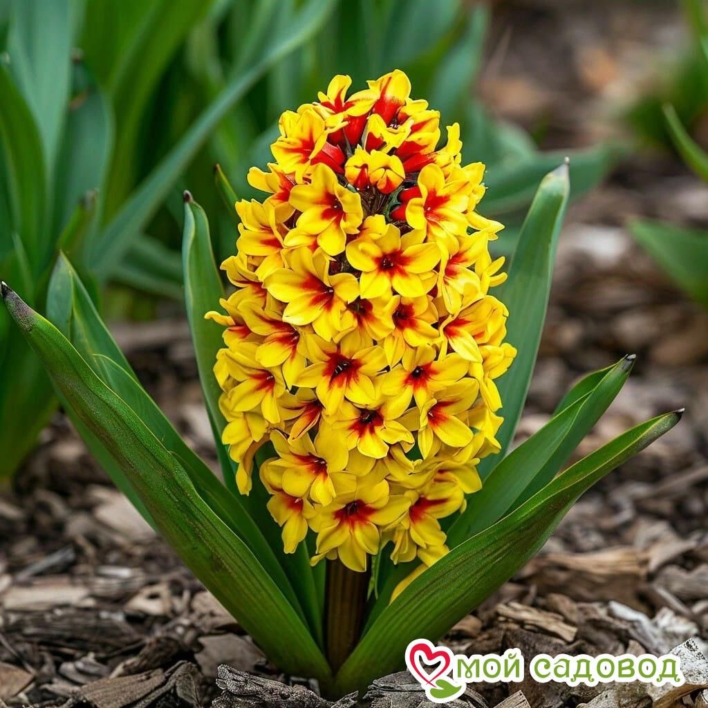 Гиацинт «Скай Блюм»: солнечный поцелуй с малиновым акцентом в вашем саду Добро пожаловать в интернет-магазин “Мой Садовод”! Мы с радостью представляем вам сорт, который подарит вашему саду ощущение весеннего тепла и радости, — гиацинт “Скай Блюм” (Sky Bloom). Этот гиацинт, словно солнечное утро, сочетает в себе яркий желтый цвет с изысканными малиновыми акцентами, создавая неповторимую атмосферу праздника. “Мой Садовод” — ваш надежный партнер в создании сада вашей мечты, где каждый цветок — воплощение красоты и гармонии! Гиацинт «Скай Блюм» — это настоящий солнечный луч, который пробуждает сад от зимней спячки. Его яркие жёлтые цветки, украшенные нежными малиновыми штрихами, словно тёплый солнечный поцелуй, притягивают взгляды и дарят ощущение радости и позитива. Представьте, как этот прекрасный гиацинт будет смотреться на вашей клумбе, в бордюре или в вазе, напоминая о весне и новых начинаниях! Основные характеристики гиацинта “Скай Блюм”: Солнечный жёлтый цвет с малиновыми акцентами: главная особенность этого сорта — яркая и привлекательная окраска цветков. Основной цвет лепестков гиацинта “Скай Блюм” — жёлтый, словно солнце, дарящее тепло и свет. Малиновые штрихи и переливы: на фоне основного желтого цвета присутствуют изысканные малиновые акценты и переливы, которые делают цветки еще более привлекательными и интересными. Малиновые штрихи могут быть в виде тонкой каймы по краям лепестков или более крупных пятен, создавая уникальный узор на каждом цветке. Размер цветка: каждый отдельный цветок гиацинта «Скай Блюм» имеет небольшой размер, около 2-3 см в диаметре. Однако благодаря плотному расположению множества цветков в колосовидном соцветии создается впечатление пышного и обильного цветения. Длина соцветия может достигать 15-20 см, превращаясь в настоящий солнечный букет. Высота растения: Гиацинт “Скай Блюм” — это компактное растение, достигающее в высоту 20-25 см. Такая высота делает его идеальным для создания эффектных композиций на клумбах, в бордюрах, а также для выращивания в контейнерах на балконах и террасах. Он прекрасно впишется в любой ландшафтный дизайн, добавив ему нотку радости и солнечного настроения. Аромат: Гиацинт “Скай Блюм” обладает сильным, приятным и насыщенным ароматом, который наполнит ваш сад весенним настроением и создаст атмосферу уюта и комфорта. Зимостойкость: Гиацинт “Скай Блюм” обладает хорошей зимостойкостью, что позволяет выращивать его в большинстве регионов с умеренным климатом. Однако в регионах с суровыми зимами рекомендуется мульчировать посадки, чтобы защитить саженцы от вымерзания. Другие характеристики: Гиацинт “Скай Блюм” отличается ранним сроком цветения, устойчивостью к основным болезням и вредителям, а также относительной неприхотливостью в уходе. Он хорошо размножается и сохраняет свою декоративность при правильной агротехнике. Преимущества покупки саженцев в интернет-магазине “Мой Садовод”: Высокое качество саженцев: мы гарантируем высокое качество наших саженцев гиацинта “Скай Блюм”. Все наши растения выращиваются в нашем собственном питомнике с использованием современных технологий и под строгим контролем специалистов. Соответствие сорту: мы гарантируем полное соответствие сорта «Скай Блюм» заявленному описанию. Вы получите именно то, что зак